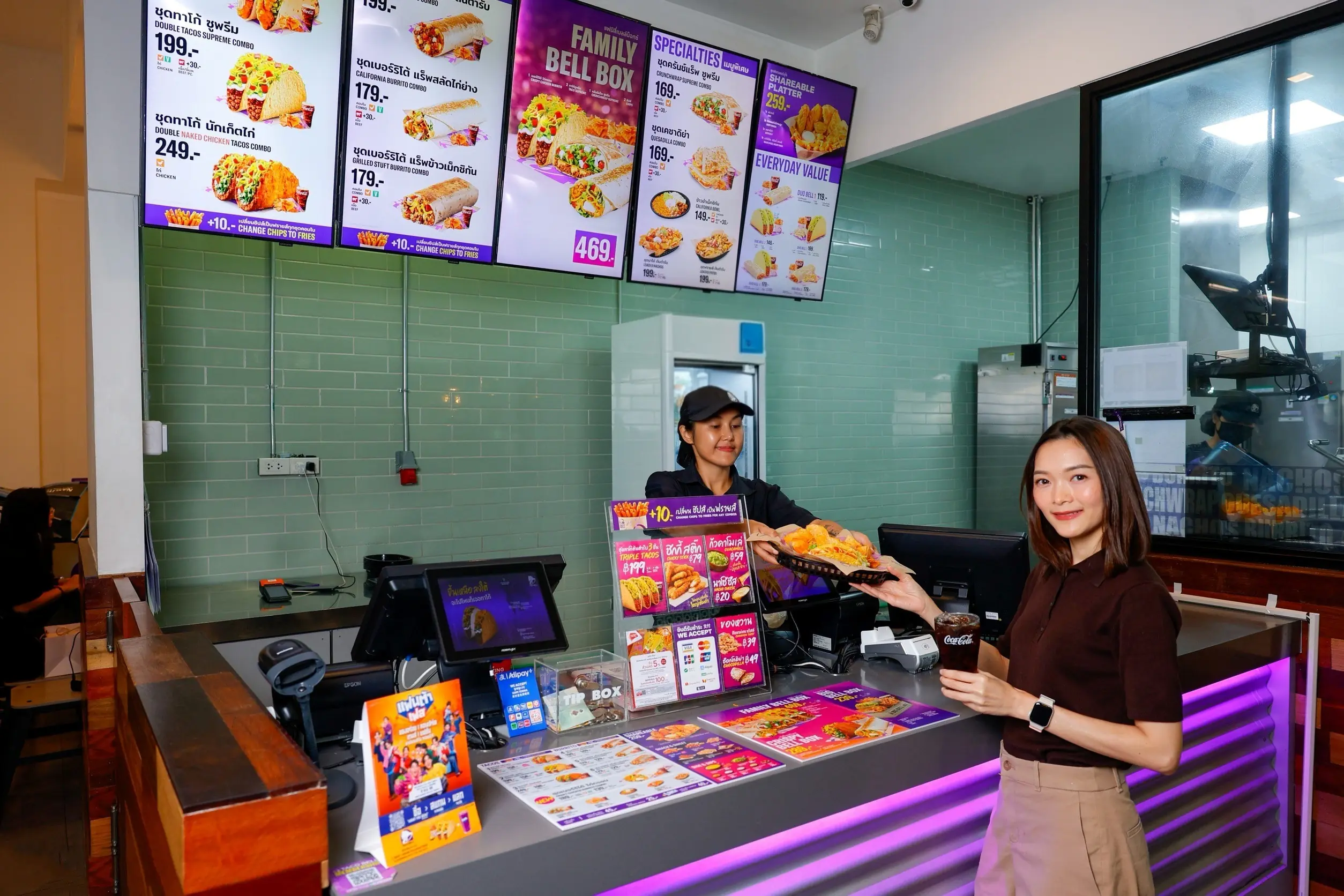 คุณเจสัน ไรลีย์ ผู้ช่วยกรรมการผู้จัดการ ธุรกิจโฮเรก้า (HoReCa) บริษัท ไทยน้ำทิพย์ คอร์ปอเรชั่น จำกัด (มหาชน) ผู้ผลิตและจำหน่ายหลักของเครื่องดื่ม “โคคา-โคล่า” ในประเทศไทย กล่าวว่า “ไทยน้ำทิพย์ โคคา-โคล่า เป็นพันธมิตรที่แข็งแกร่งกับ Taco Bell ตั้งแต่วันแรกที่เข้ามาเปิดสาขาในประเทศไทย ปี 2562 จนถึงปัจจุบัน เรารู้สึกยินดีเป็นอย่างยิ่งที่ได้เป็นส่วนหนึ่งในการเปิดเซกเมนต์ใหม่ในตลาด QSR นำอาหารฟาสต์ฟู้ดสไตล์เม็กซิกันชื่อดังจากอเมริกาที่ได้รับความนิยมอย่างล้นหลามในระดับโลกเข้ามาในประเทศไทย มอบทางเลือกการทานอาหารมื้อด่วนที่หลากหลายและสนุกขึ้นแก่ผู้บริโภค พร้อมเดินหน้าขับเคลื่อนสร้างความรู้จักแบรนด์ Taco Bell ที่แพร่หลายยิ่งขึ้นให้ผู้บริโภค ผ่านการจับคู่เมนูอาหารเม็กซิกันฟาสต์ฟู้ดเข้ากับเครื่องดื่มยอดนิยมจาก “โคคา-โคล่า” ที่ผู้บริโภคในประเทศไทยคุ้นเคย โดยเสิร์ฟความสดชื่นผ่าน “โค้ก” ออริจินัล “โค้ก” ซีโร่ “แฟนต้า” กลิ่นองุ่น และ “ฟิวซ์ ที” เติมเต็มความอร่อยในร้าน Taco Bell ทุกสาขาจำนวน 38 แห่งทั่วประเทศ ผนึกจุดแข็งของสองแบรนด์ดังระดับโลก มอบประสบการณ์มื้ออาหารที่อร่อย สดชื่น และจัดกิจกรรมและโปรโมชั่นพิเศษร่วมกัน เพื่อสร้างสีสันและมอบประสบการณ์แห่งความสนุกให้ผู้บริโภค ด้วยประสบการณ์และความเชี่ยวชาญในตลาด QSR ของไทยน้ำทิพย์ โคคา-โคล่า เราพร้อมเดินหน้าขับเคลื่อนความสำเร็จร่วมกันกับพันธมิตร ด้วยสินค้าและบริการที่มีคุณภาพ ได้มาตรฐาน และส่งมอบช่วงเวลาแห่งความสุขให้ผู้บริโภคในประเทศไทยต่อไป”